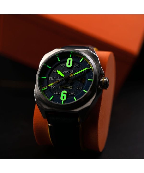 AVI-8 Bell X-1 Machbuster Automatic Catalina Blue Leather Strap Blue Dial AV-4115-03 Men's Watch