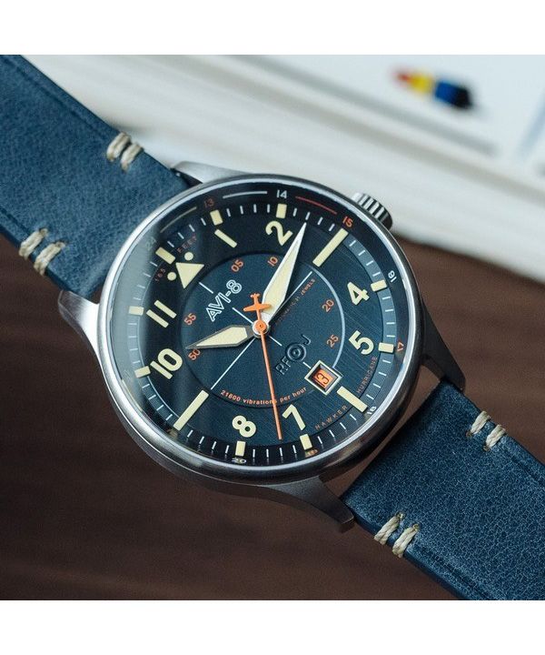 AVI-8 Hawker Hurricane Kent Automatic Sussex Leather Strap Blue Dial Automatic AV-4094-02 Men's Watch