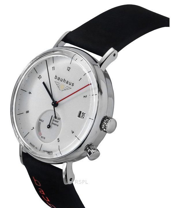 Bauhaus Classic Black Leather Strap White Dial Solar 21121 Men's Watch