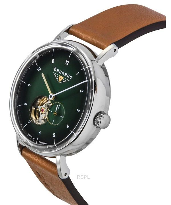 Bauhaus Classic Leather Strap Dark Green Open Heart Dial Automatic 21664 Men's Watch