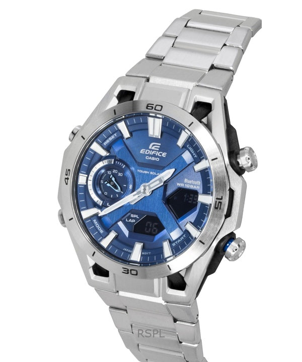 Casio Edifice Analog Digital Stainless Steel Blue Dial Solar ECB-2300D-2A 100M Men's Watch