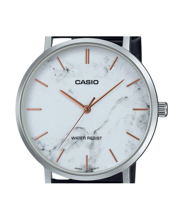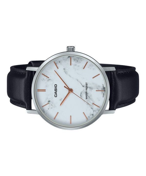 Casio Standard Analog Black Leather Strap Marble Inspired White Dial Quartz MTP-VT01LM-7A Men's Watch