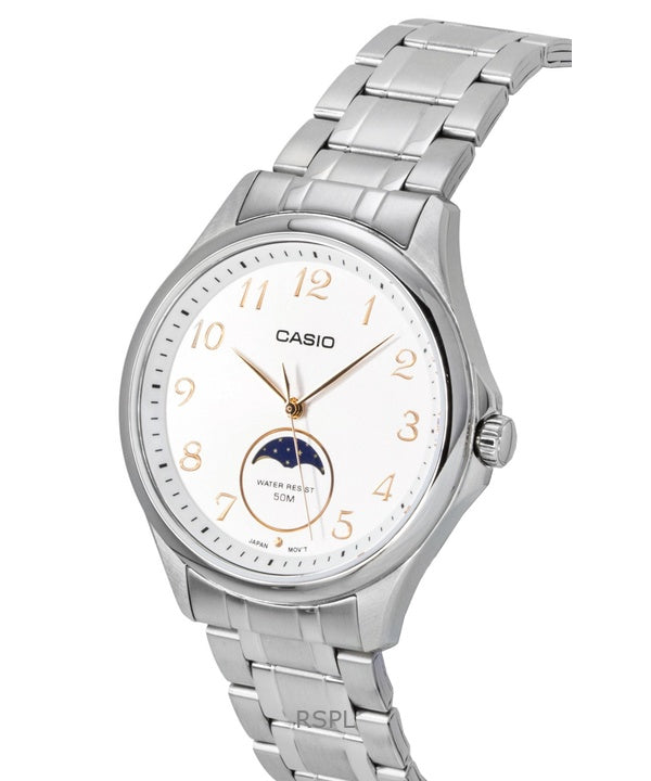 Casio Standard Analog Moon Phase Stainless Steel White Dial Quartz MTP-M110D-7AV Men's Watch