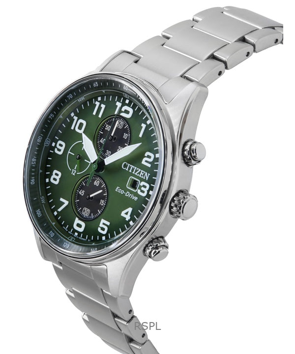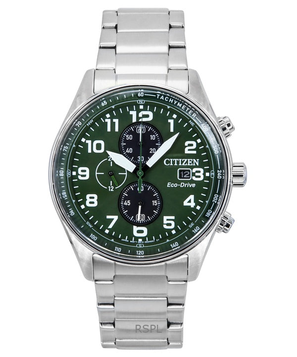 Citizen Eco-Drive Chronograph Stainless Steel Green Dial CA0770-72X 100M Men's Watch