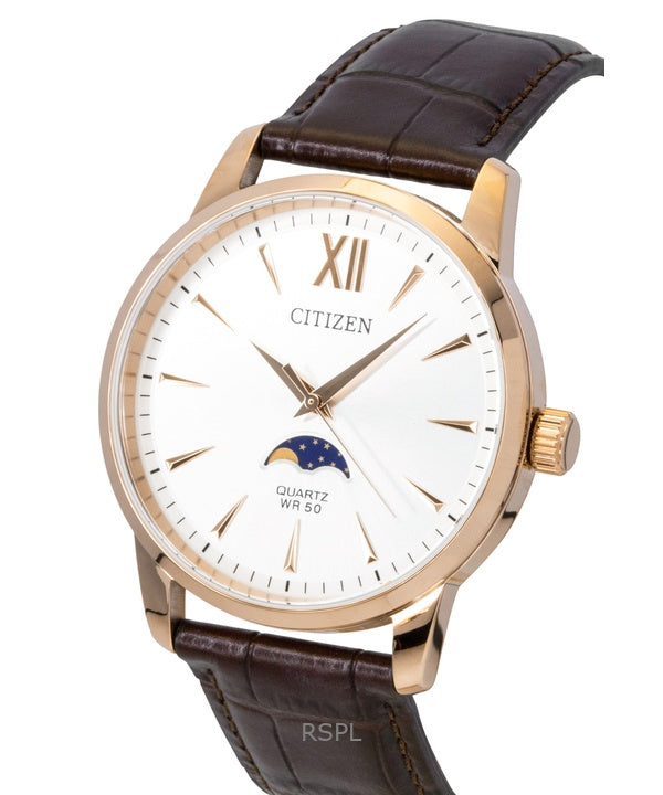 Citizen Moonphase Brown Leather Silver Dial Quartz AK5003-05A Men's Watch