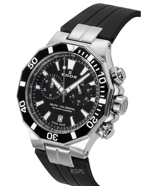 Edox Delfin The Original Chronograph Rubber Strap Black Dial Quartz Diver's 10112-3NCA-NIN 200M Men's Watch