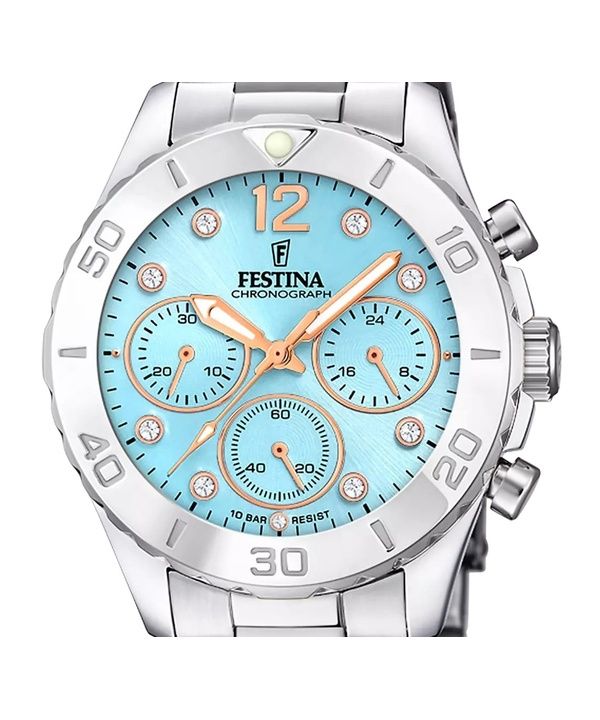 Festina Boyfriend Chronograph Crystal Accents Blue Dial Quartz F20603-4 100M Women's Watch