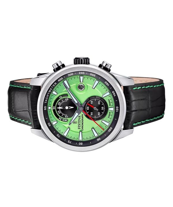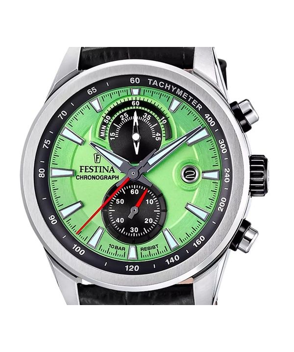 Festina Timeless Chronograph Leather Strap Green Dial Quartz F20695-3 100M Men's Watch
