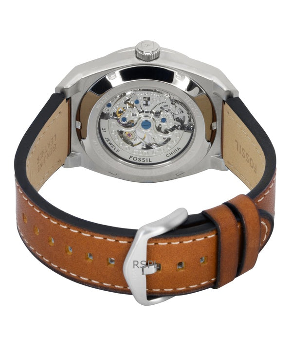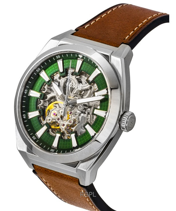 Fossil Everett Brown Leather Strap Green Skeleton Dial Automatic ME3261 Men's Watch