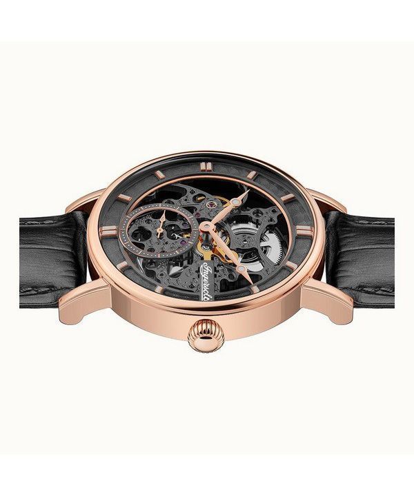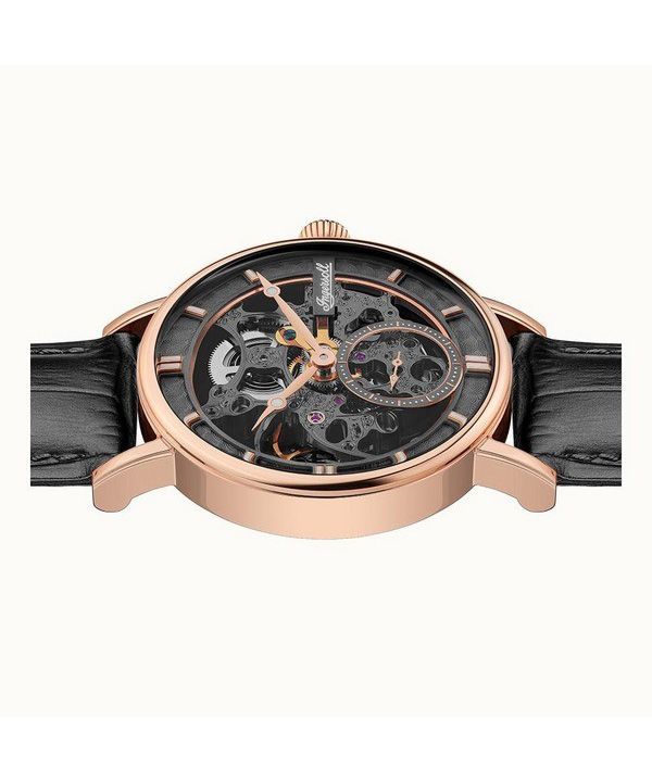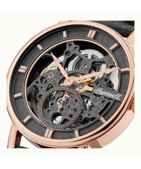 Ingersoll The Herald Leather Strap Black Skeleton Dial Automatic I00403B Mens Watch