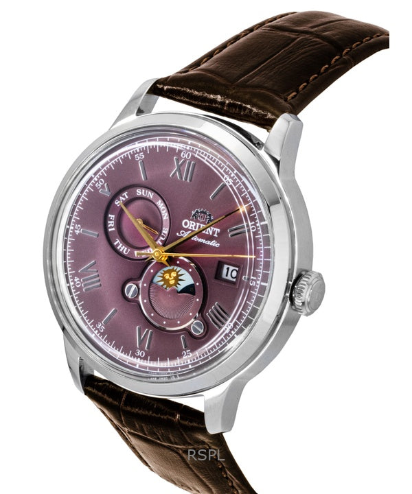 Orient Classic Sun and Moon Leather Strap Bordeaux Dial Automatic RA-AK0807R Men's Watch