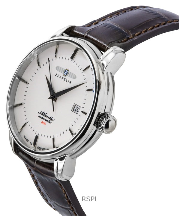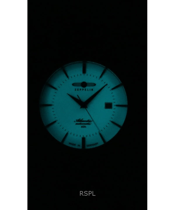 Zeppelin Atlantic Leather Strap Full Luminous Beige Dial Automatic 84605 Men's Watch