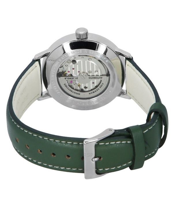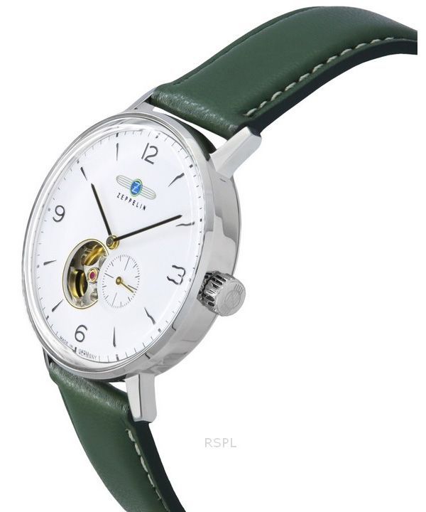 Zeppelin LZ129 Hindenburg Green Leather Strap Open Heart White Dial Automatic 80661N Men's Watch