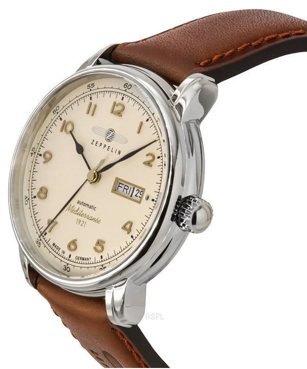 Zeppelin Mediterranee 1921 Leather Strap Beige Dial Automatic 96645 Men's Watch