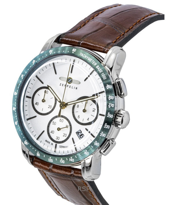 Zeppelin New York Chronograph Leather Strap White Dial Quartz 88784 Men's Watch